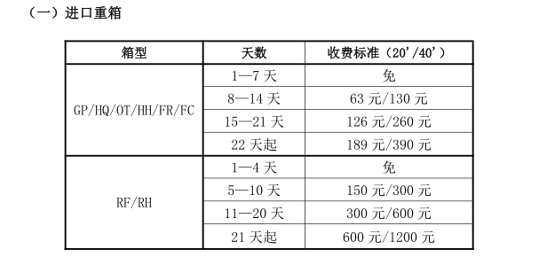 2.船公司滞箱费标准: